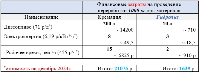 (дизтопливо) по сравнению с кремацией – до